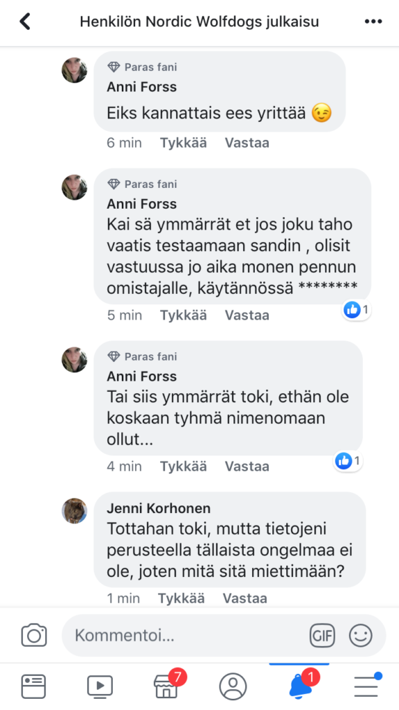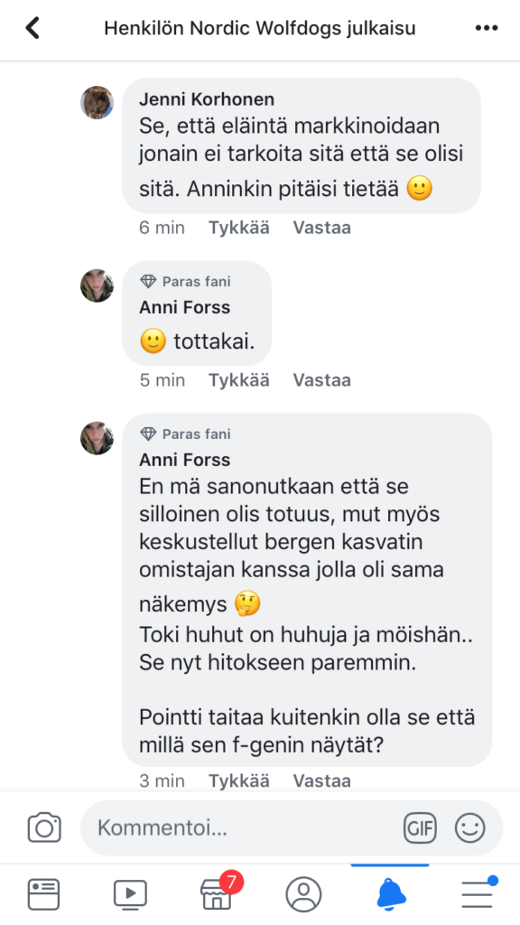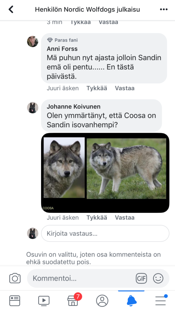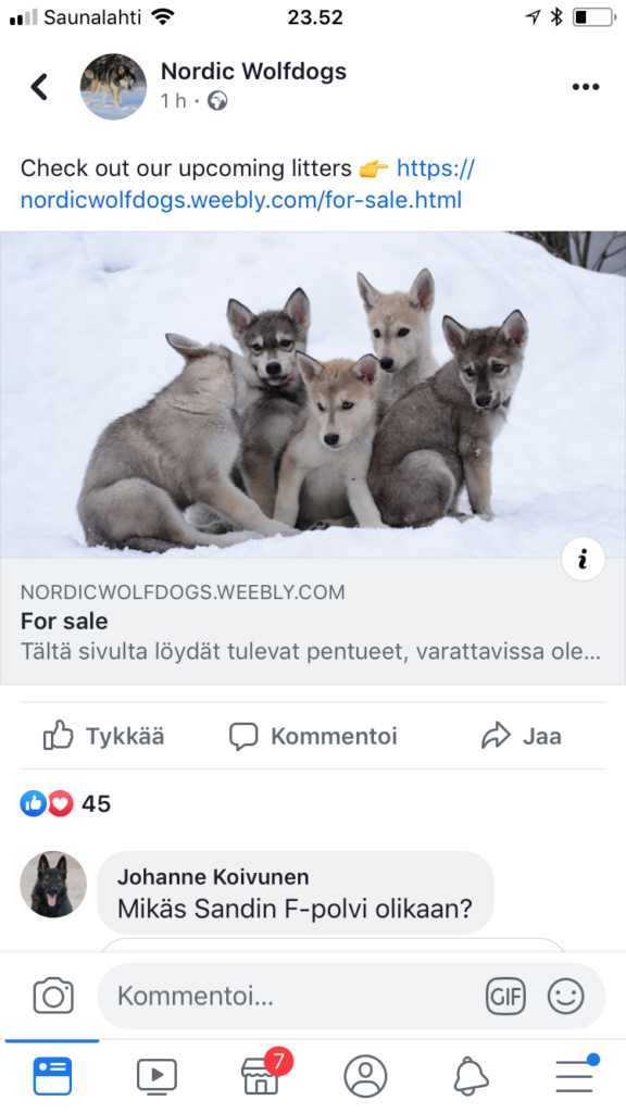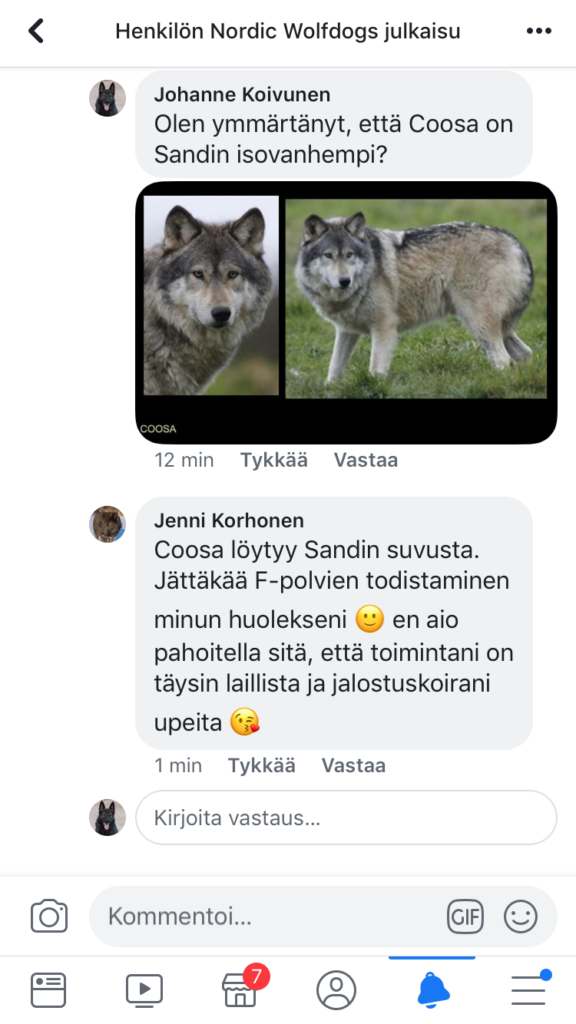 Erään susikoirakasvattajan Facebook-sivulla käytiin mielenkiintoinen yöllinen keskustelu tulevan pentueen isän taustoista. Kyseessä on susikoira tai koirasusi jonka F-polveksi on esitetty niin F2, F3, F4 kuin nyt sitten myös F5, kun 1.6.2019 voimaan tullut Vieraslajiasetus kieltää F1-F4 polven koirasusien lisäännyttämisen. Eläin on syntynyt kasvattajan mukaan 25.1.2016 Slovakiassa. Aiempi 1.1.2016 voimaan astunut Vieraslajiasetus kielsi F1-F4 polven koirasusien maahantuonnin.