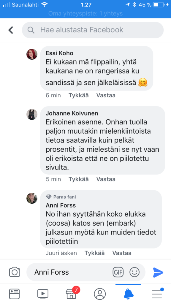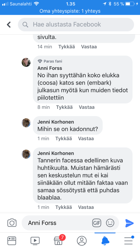 Kello kaksi yöllä nämä kommentit olivatkin jo kadonneet kuin tuhka tuuleen. Löysiköhän henkilö etsimänsä keskustelun?